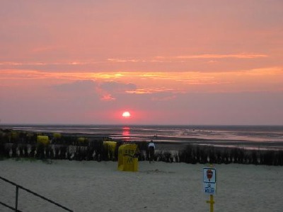Sonnenuntergang, gesehen am Strand von Duhnen.