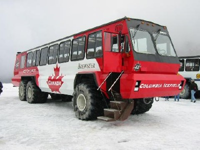 Spezialfahrzeug auf dem Columbia-Icefield. Athabasca-Glacier.