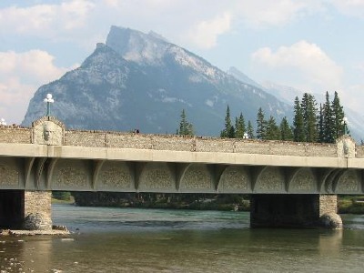 Banff, Bow-River-Bridge. Im Hintergrund Mount Rundle.