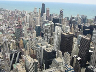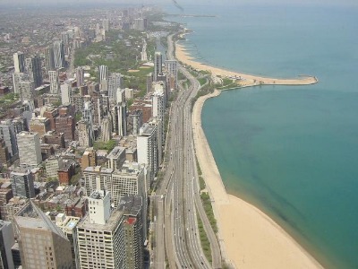 Blick vom Sears Tower Richtung John Hancock Tower und Michigansee.