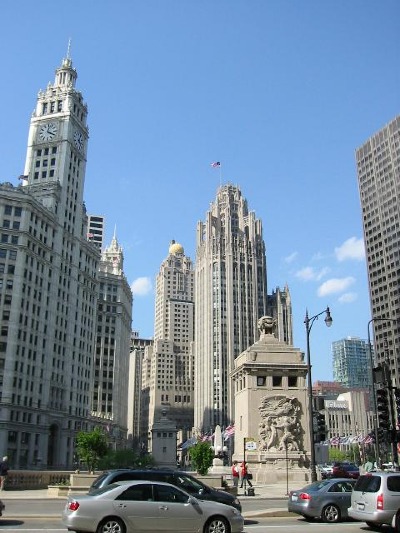 Das "Fort Dearborn", im Hintergrund das "Wrigley Building" und der "Tribune Tower"